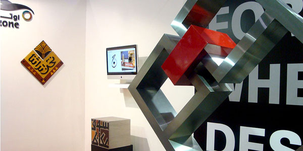 Al Mohtaraf’s participation was more artistic than graphic, showcasing three main categories: 3 dimensional sculptures of word art by Kameel Hawa, the novel Mohtaraf publishing activity of art books, and finally a collection of calligraphic watercolors of the names of the Prophets by Kameel Hawa.